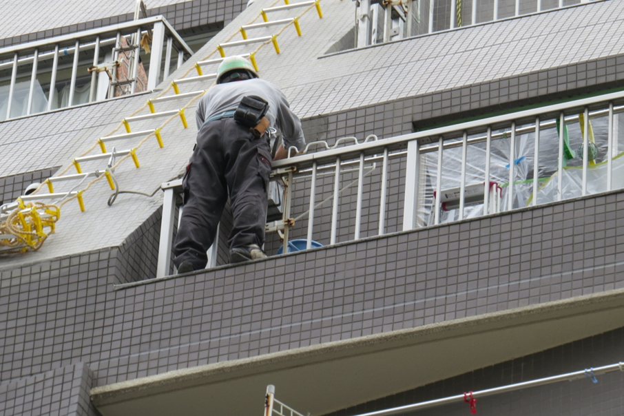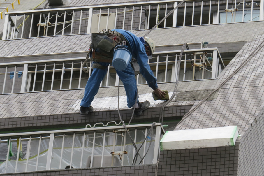 (漏水原因箇所へ外壁樹脂注入、タイル目地埋め後、洗浄)